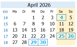 Tag in blau = Vereinsaktivität