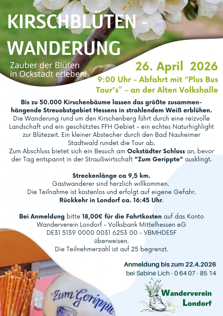 zur Kirschblüte nach Ockstadt – Treffpunkt 9:00 Uhr „Alte Volkshalle“ ….