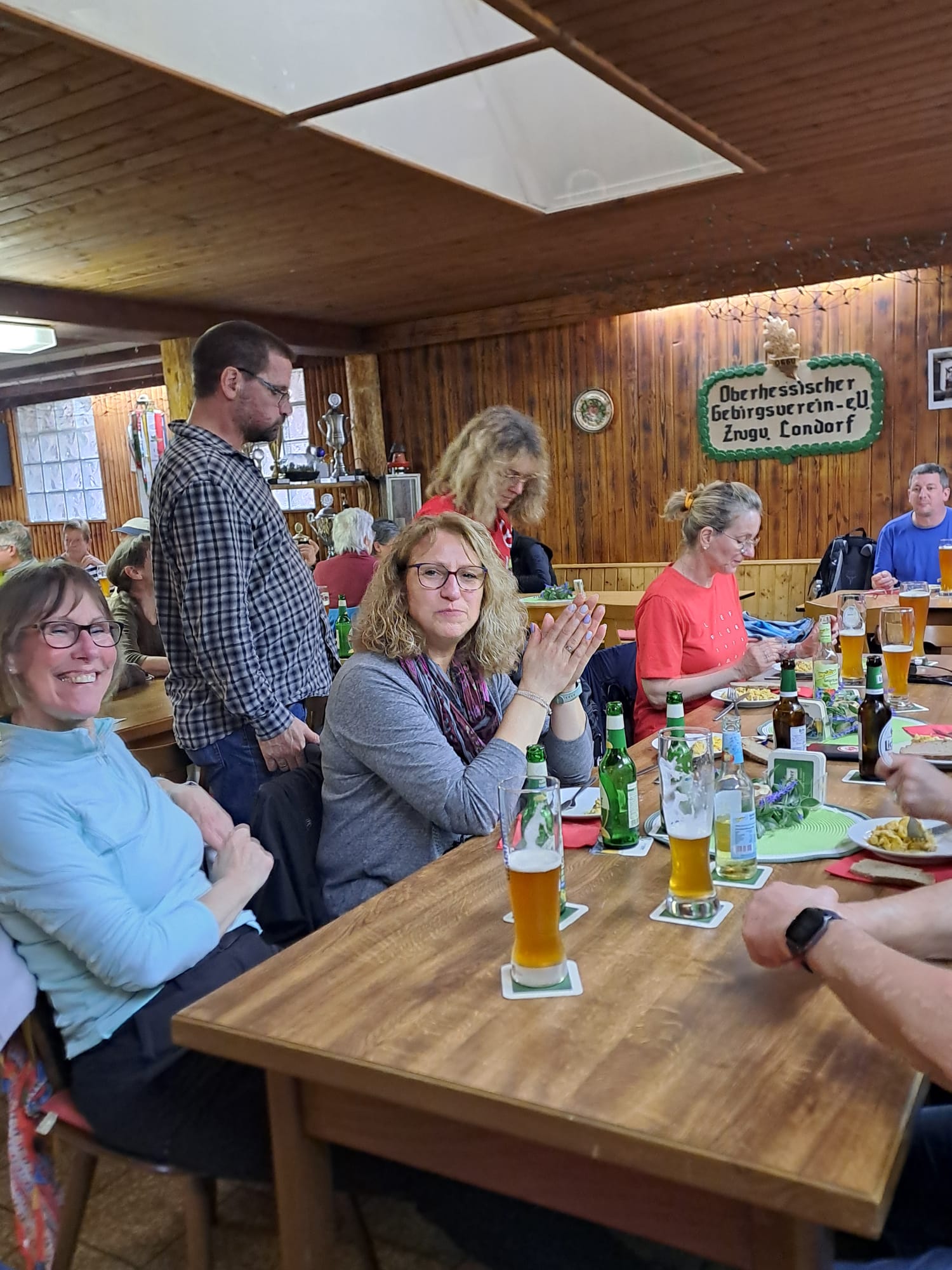 Zum Abschluss ein gemeinsames Mittagessen im Biergarten vom Bistro Schirn. Bei erfrischenden Kaltgetränken, leckerem Essen und gemütlichem beisammen sein , waren wir uns alle einig: auf dem Grünberger Glücksweg kann man nur glücklich sein.
